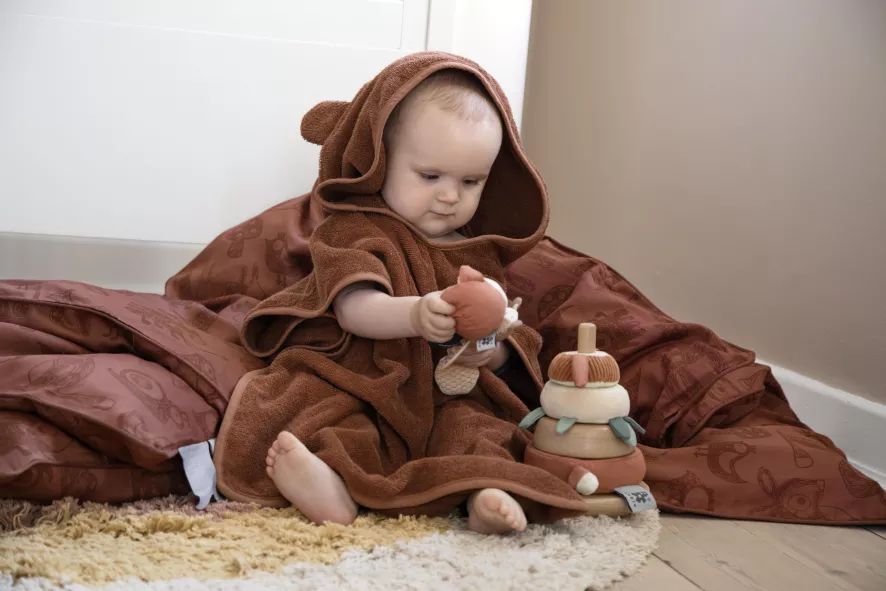 Het Forest junior dekbedovertrek 100×140 van Sebra is 140 centimeter lang en 100 centimeter breed. Het dekbedovertrek bevat een kussensloop van 45 centimeter lang en 40 centimeter breed. Het beddengoed is gemaakt van 100% GOTS-gecertificeerd organisch katoen. Het overtrek is wasbaar op 60 graden. Het bedlinnen is voorzien van biezen, een YKK-kwaliteit ritssluiting en twee knuffelflappen aan de bovenkant. Het Forest patroon bestaat uit illustraties van dieren in het bos; herten, egels, slakken en vossen. De stof heeft een licht gebrande basiskleur met illustraties in een donkere kleur. Het Forest junior beddengoed is verkrijgbaar in meerdere kleuren. Het dekbedovertrek wordt geleverd in een prachtig zakje van dezelfde kwaliteit als het beddengoed.