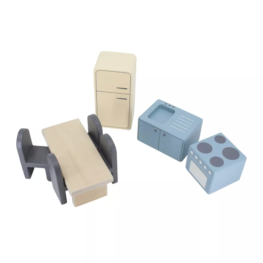 Ook de poppen in het The Sebra’s poppenhuis houden van kokkerellen. Daarom heeft Sebra speciaal voor deze poppetjes de miniatuur keuken ontworpen. De keuken bestaat uit een keukentafel met stoelen, een koelkast, aanrecht én een gasfornuisje. Een ding is zeker, de taarten en koekjes vliegen je om de oren! De set is volledig gemaakt van multiplex, gekleurd met een niet giftige verf. De poppenkast en bijbehorende accessoires zijn geschikt voor kinderen vanaf 3 jaar. Sebra waarschuwt: Niet geschikt voor kinderen onder de 3 jaar. Kleine deeltjes. Gevaar voor verstikking. Sebra raadt aan het poppenhuis en de accessoires alleen te reinigen met een vochtige, zachte doek.