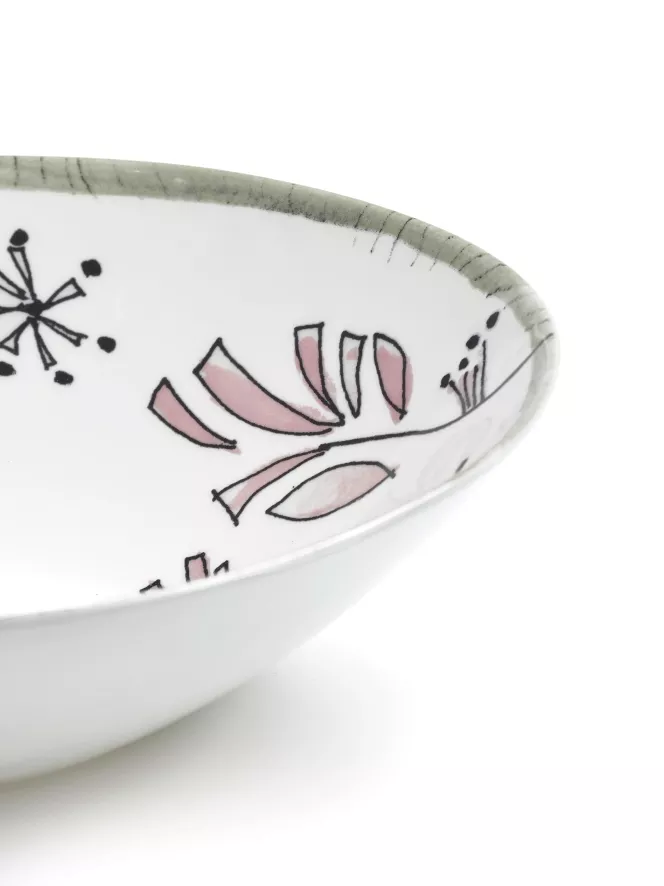 De Serax Midnight Flowers by Marni Fiore Rosa kom Ø18 is ontworpen door Francesco Risso. De Midnight Flowers by Marni Fiore Rosa kom Ø18 van Serax heeft een diameter van 18 centimeter en een hoogte van 5,5 centimeter. De kom is gemaakt van porselein en is voorzien van een botanische tekening die met de hand geïllustreerd is. De kom is afgewerkt met een beschermende glazuurlaag. Deze kom heeft een gewicht van 0,41 kilogram en wordt per twee stuks geleverd. De Midnight Flowers by Marni Fiore Rosa kom Ø18 van Serax komt uit de gelijknamige Midnight Flowers by Marni collectie en is in verschillende uitvoeringen verkrijgbaar.