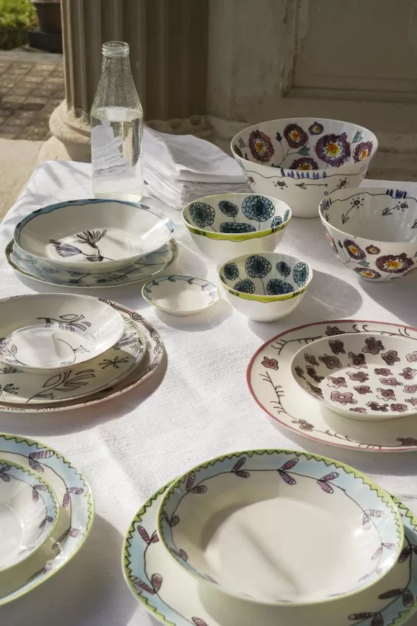 De Serax Midnight Flowers by Marni Fiore Rosa Kom Ø22 is ontworpen door Francesco Risso. De Midnight Flowers by Marni Fiore Rosa kom Ø22 van Serax heeft een diameter van 22 centimeter en een hoogte van 6,8 centimeter. De kom is gemaakt van porselein en is voorzien van een botanische tekening die met de hand geïllustreerd is. De kom is afgewerkt met een beschermende glazuurlaag, heeft een gewicht van 0,54 kilogram en wordt per twee stuks geleverd. De Midnight Flowers by Marni Fiore Rosa kom Ø22 van Serax komt uit de gelijknamige Midnight Flowers by Marni collectie en is in verschillende uitvoeringen verkrijgbaar.