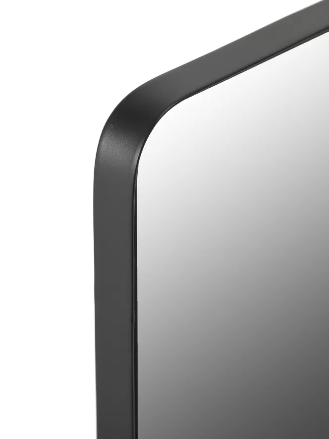 De Mirrors by Marie Michielssen Spiegel 40×55 is 40 centimeter lang en 55 centimeter hoog. De spiegel is 1,5 centimeter diep. Het frame van Mirrors is gemaakt van staal, afgewerkt met een zwarte coating, en weegt 3,8 kilogram. Je kan de spiegel zowel horizontaal als verticaal ophangen.