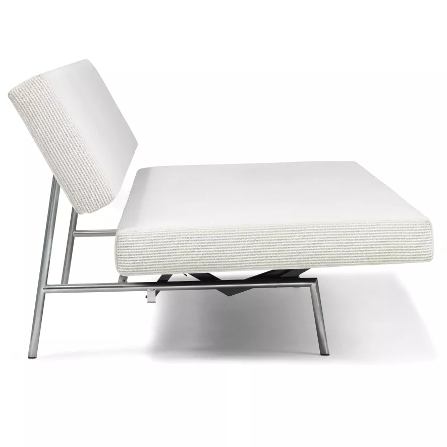 De BR 02 slaapbank chrome frame van Spectrum heeft een breedte van 192 centimeter, een diepte van 82 centimeter en een totale hoogte van 70 centimeter. De zithoogte van deze slaapbank is 40 centimeter. De bank heeft een rond buisframe dat mat verchroomd is. Door de losse elementen kan de slaapbank, indien nodig, gemakkelijk opnieuw gestoffeerd worden. De BR 02 slaapbank chrome frame van Spectrum is verkrijgbaar in vier verschillende varianten en is ook verkrijgbaar in een variant met een zwart frame.