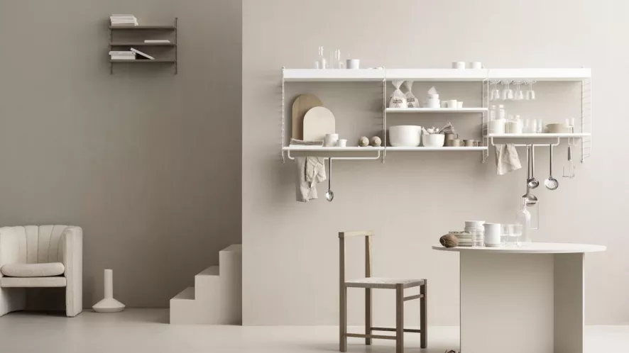 String Furniture Metal Shelf High Edge 58x20cm Wit