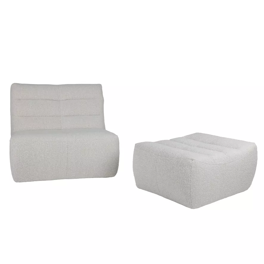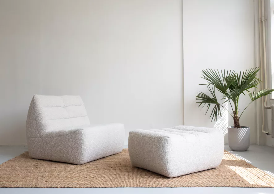 De Louis fauteuil van Studio Zondag heeft een breedte van 100 centimeter, een diepte van 105 centimeter, een hoogte van 86 centimeter, een zithoogte van 46 centimeter en een gewicht van 20 kilogram. De stoel heeft een frame van 100% schuim, waardoor de stoel licht van gewicht is. De loungestoel is bekleed met bouclé-stof en is verkrijgbaar in verschillende kleuren.
