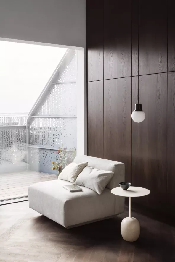 De &tradition Develius bank 3-zits met chaise longue links is ontworpen door Edward van Vliet.