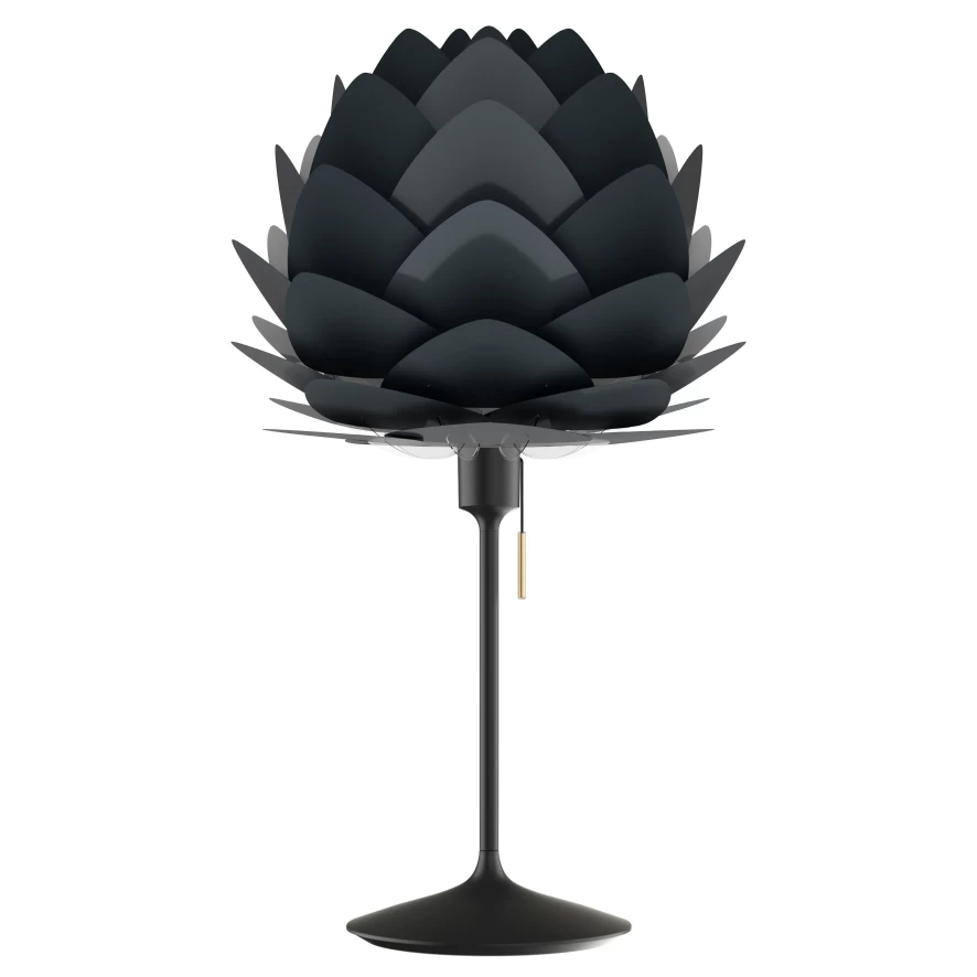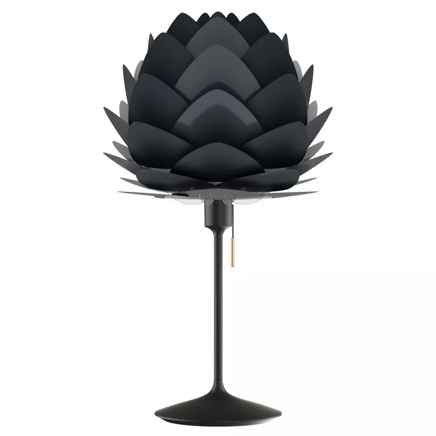 De Aluvia Mini tafellamp heeft een totale hoogte van 72 centimeter en een diameter van 40 centimeter. Het armatuur is gemaakt van staal, aluminium en ABS (kunststof). De voet heeft een diameter van 22 centimeter. De Aluvia kap is gemaakt van aluminium en kunststof en heeft een diameter van 40 centimeter. In de lamp zit een E27 fitting, geschikt voor een LED lichtbron van maximaal 15W. De lichtbron wordt niet meegeleverd. De lamp heeft een USB-poort op de voet en is in diverse uitvoeringen beschikbaar. Umage doneert voor iedere verkochte kunststof lamp 5% van de omzet aan het opruimen van de zee. Daarnaast wordt de verlichting in herbruikbare giftboxes verpakt zodat deze meerdere keren te gebruiken zijn.