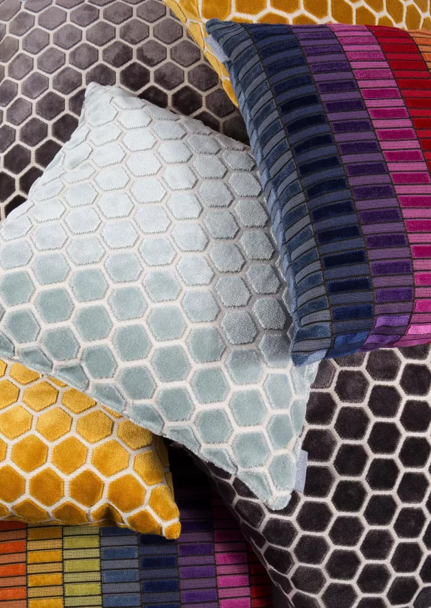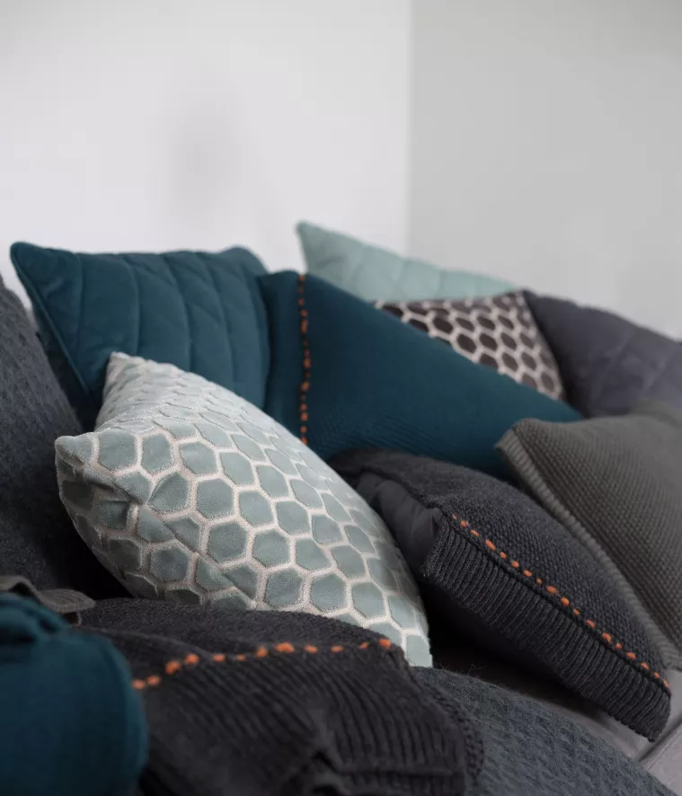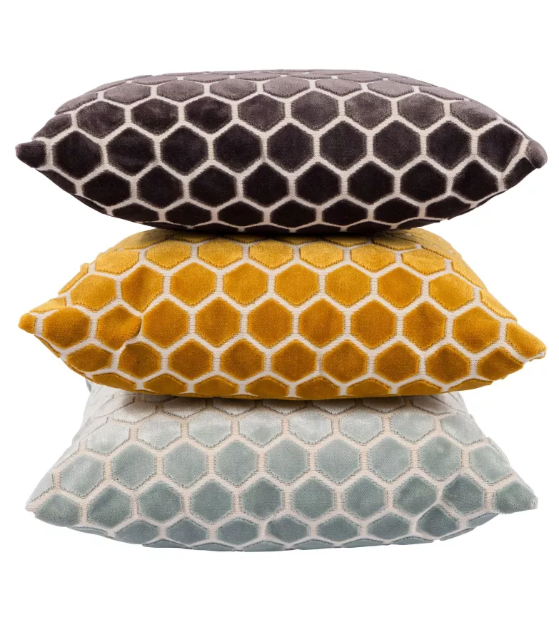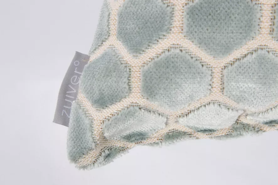Het Monty kussen van Zuiver heeft een honinggraat patroon en is beschikbaar in de kleuren grijs, lichtblauw en honing. Het kussen is gemaakt van 72% viscose, 23% polyester en 5% katoen. De vulling van het kussen is gemaakt van polyether. Het kussen heeft een lengte en een breedte van 45 centimeter.